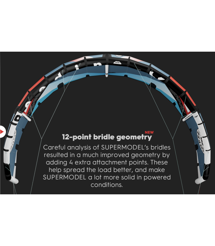 SuperModel je navrhnutý s jedným cieľom - aby bol intuitívny, ľahko ovládateľný a výkonný - vďaka tomu sa nebudeš musieť sústrediť na ovládanie kitu, ale na samotnú jazdu a posunieš sa na vyššiu úroveň jednoduchšie než kedykoľvek predtým bez ohľadu na to, či si začiatočník alebo skúsený kiter. Je pre jazdca, ktorý sa chce zabaviť s jedným kitom vo všetkých podmienkach a pri všetkých disciplínach kitingu.